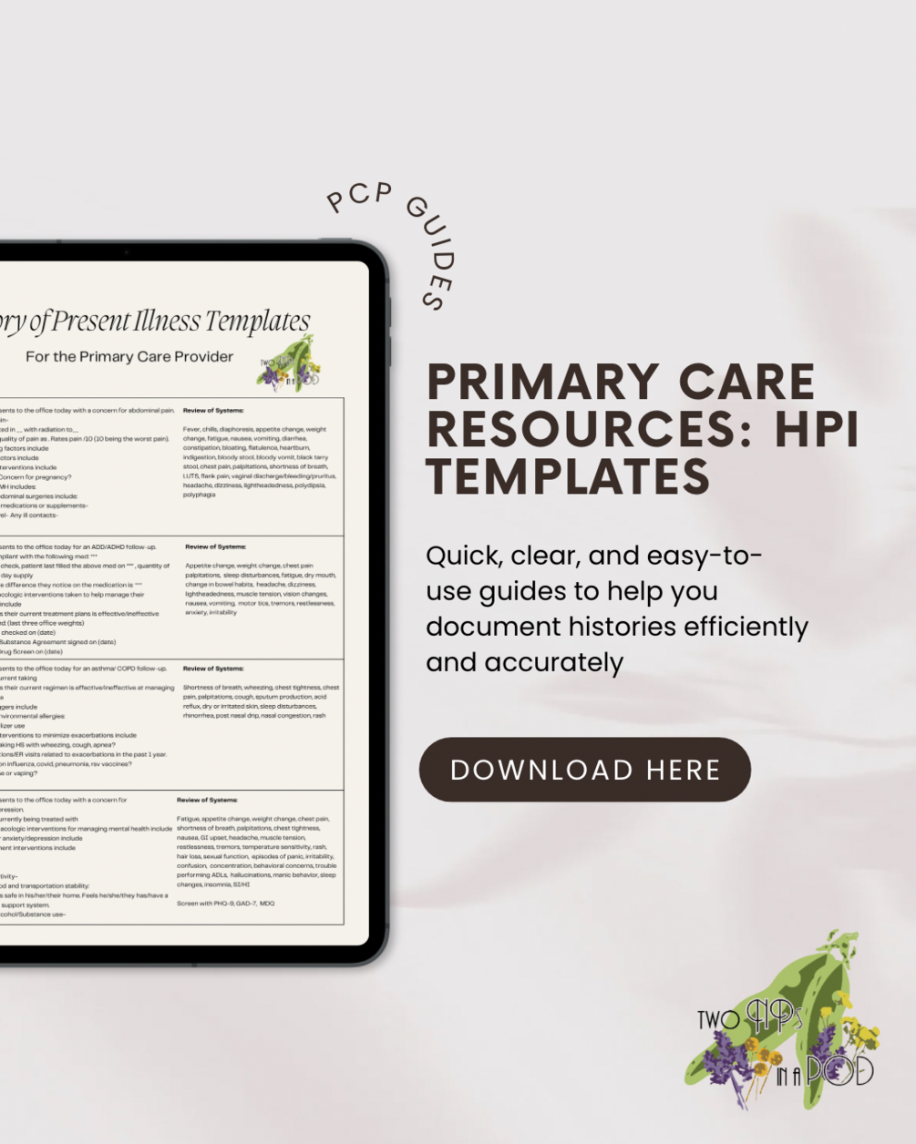 Streamline your patient assessments with these Primary Care HPI Cheat Sheets! Quick, clear, and easy-to-use guides to help you document histories efficiently and accurately. Perfect for busy healthcare professionals! Instant access to twenty HPIs with corresponding ROS.